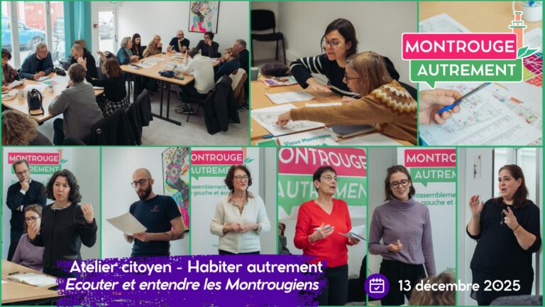 Un moment de co-création riche, réunissant citoyens, associations montrougiennes, ABCD Montrouge, La Voix de Montrouge, et Élodie Dorfiac, Première adjointe à Châtillon, transition écologique, urbanisme, mobilités et espaces verts, Conseillère territoriale Vallée Sud – Grand Paris.