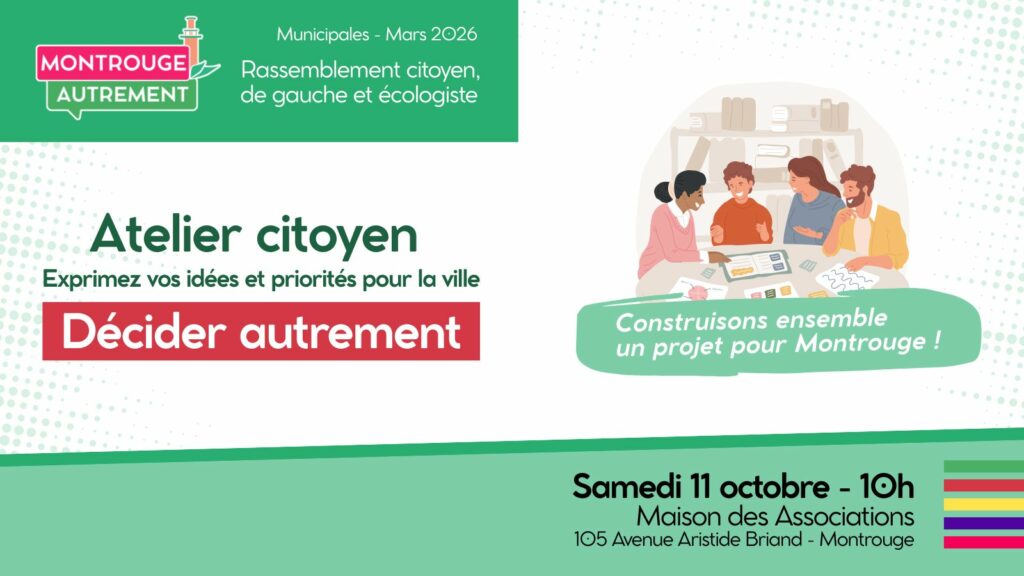 Montrouge Autrement vous donne rendez-vous pour son premier atelier citoyen » Décider autrement » samedi…