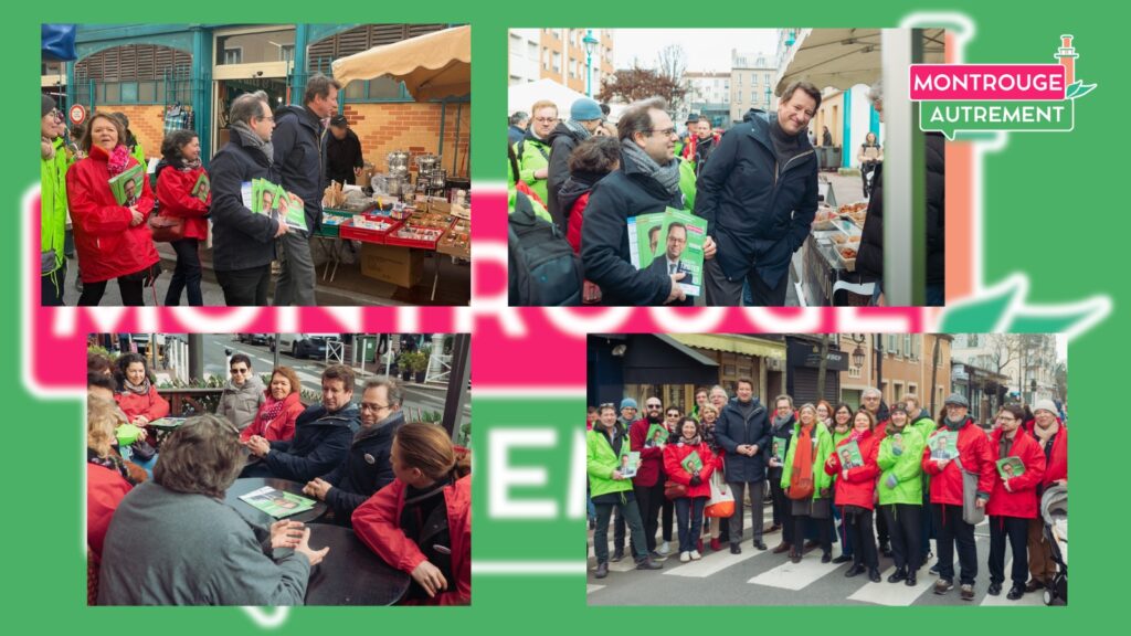 Visite de soutien de Yannick Jadot dimanche 1er mars 03/02/2026 / Notre actualité, Notre projet Toute l’équipe était présente autour de Yannick Jadot venu apporter son soutien au rassemblement Montrouge Autrement et à Joaquim Timoteo, sa tête de liste, ce dimanche 1er mars au marché Victor Hugo. Retours en photos Suivez-nous